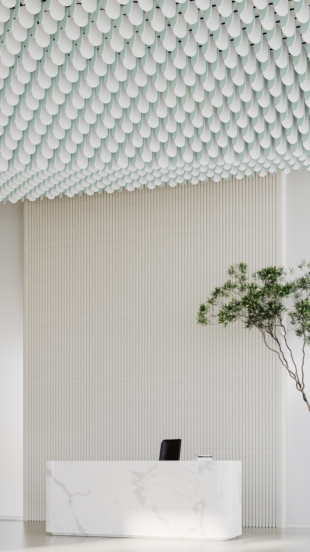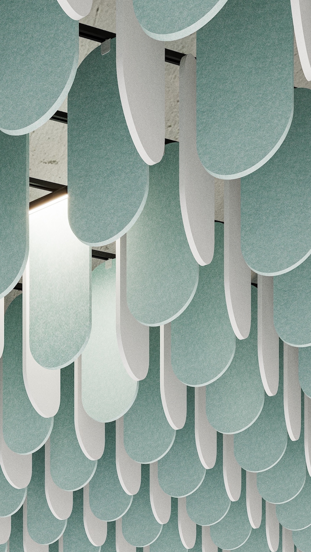 Flock redefines the acoustic ceiling as a living composition. Inspired by the natural dance of birds, this system captures motion and rhythm to transform static surfaces into dynamic works of art. It empowers to create unique spatial experiences through Computational Design.