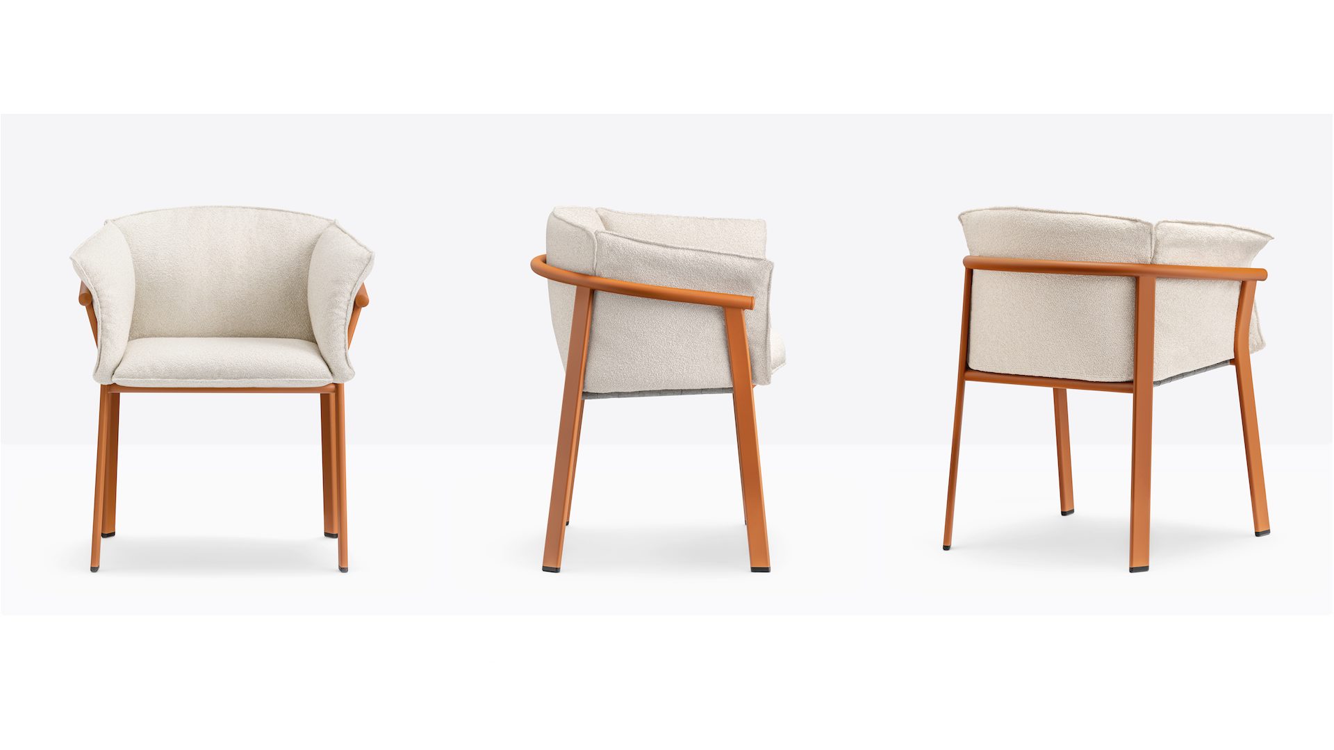 Lamorisse is an armchair designed for the outdoors, but it is equally suited to any setting for pure relaxation. Its aluminium frame makes it ideal for a waterfront veranda, shaded outdoor areas, for a poolside table, and even on a ship deck. The structure, made in extruded aluminium, with oval legs welded to round tube armrests, holds a large and enveloping cushion in polyurethane foam. The seat is supported by elastic belts that offer maximum comfort and strength. The cushion consists of multiple sections joined by a zip and folded to create the seat, back and armrests. The easy placement of the cushion on the structure facilitates storage and handling and allows the padded parts to be renovated without having to replace the entire product.