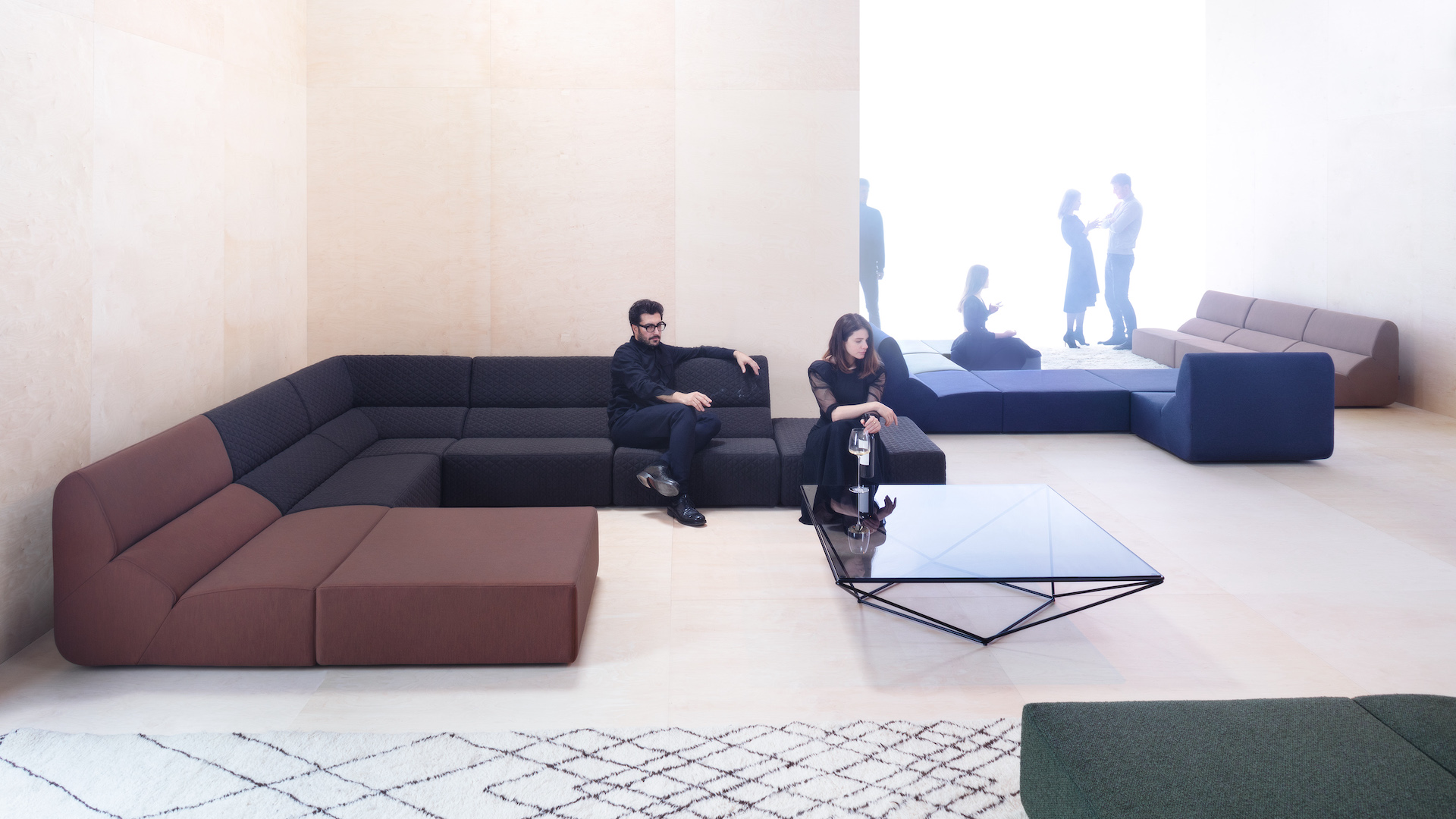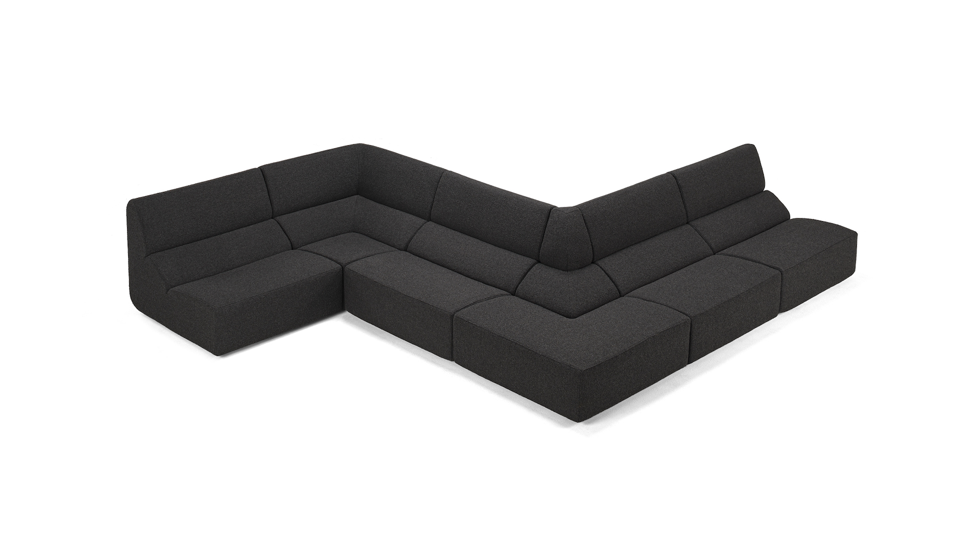 Layout was designed as a modular crossover between architecture and design. It embodies the configuration of a spatial algorithm that creates a soft interior landscape, fitting for larger spaces. Its pragmatic design brings the ultimate comfort of a home sofa into an office environment, hotel lobby or airport lounge, offering a cocoon of privacy. With its seamlessly interconnected seats and poufs, it generates a soft terrain of sloping surfaces that are also pliable for leisure and socializing at home. Even in smaller spaces, Layout’s individual elements can be used to create islands or clusters for various situational contexts. With its predominant functionalism, Layout is a quintessential example of Numen/ForUse aesthetics.