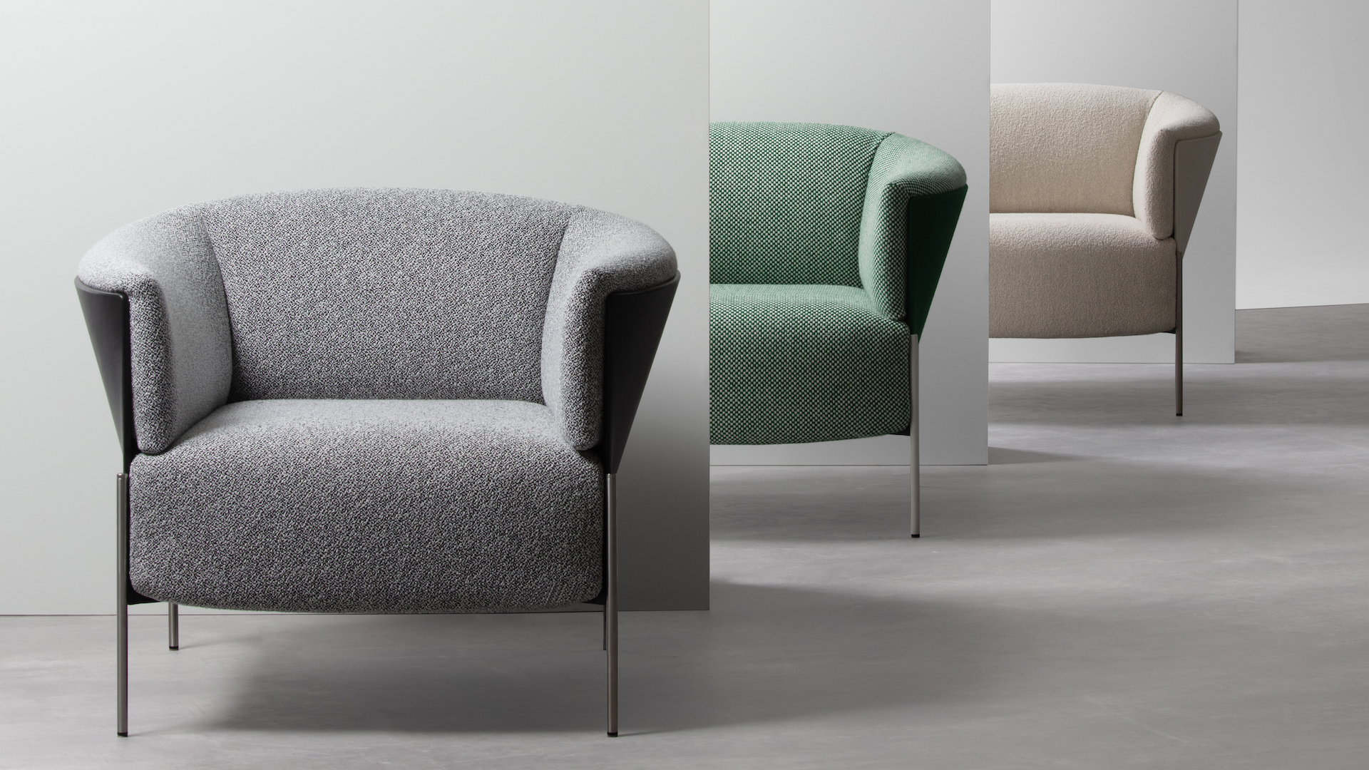 Concrete and clear geodesics of constructive membrane from the outside turn from convex to concave, hence supporting ergonomic line that harmoniously embrace the volumes of backrest and armrests. Upholstered elements are rich in dimensions and together with specially designed substructures enable cosy and long sitting sessions in many positions.