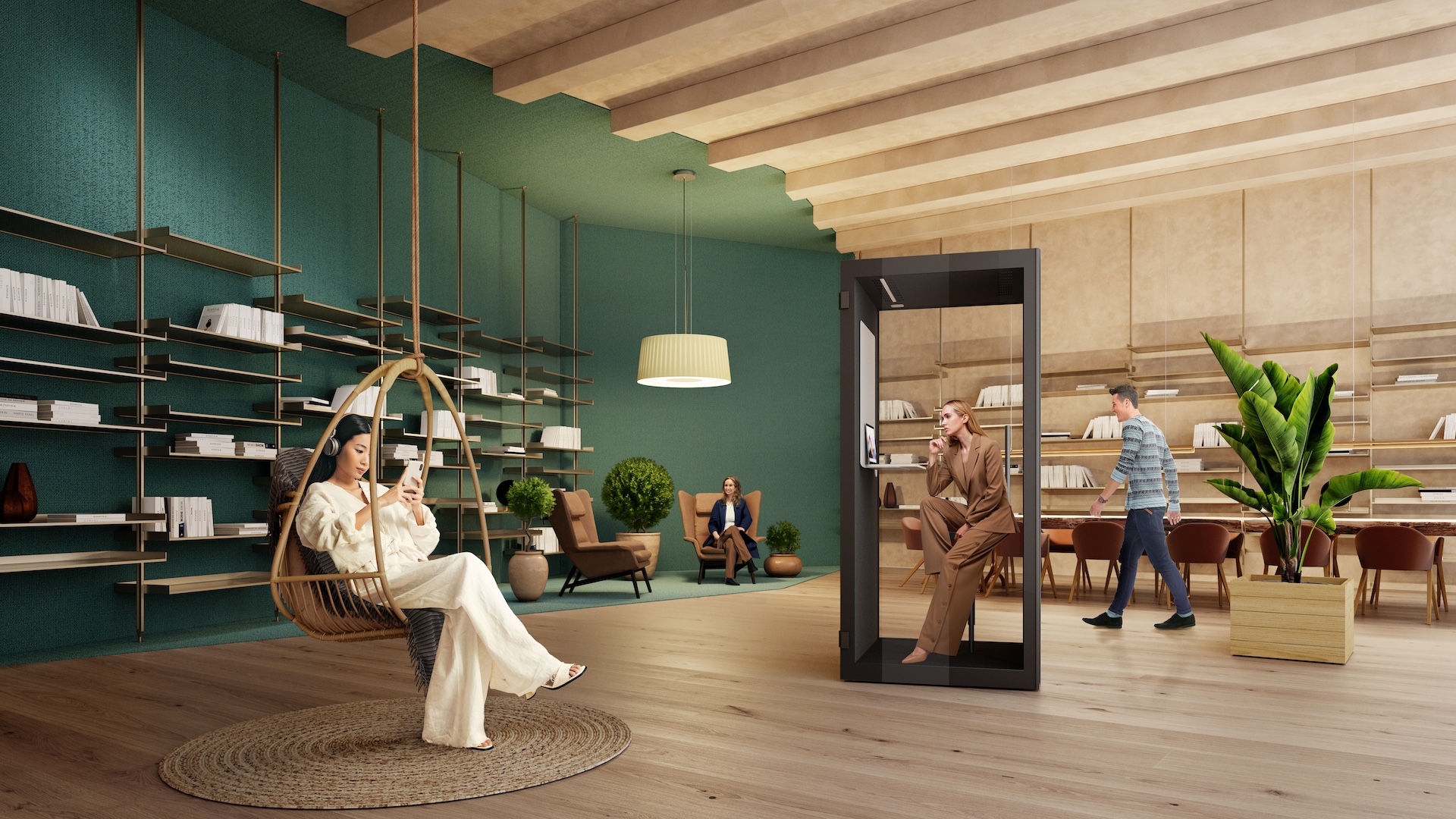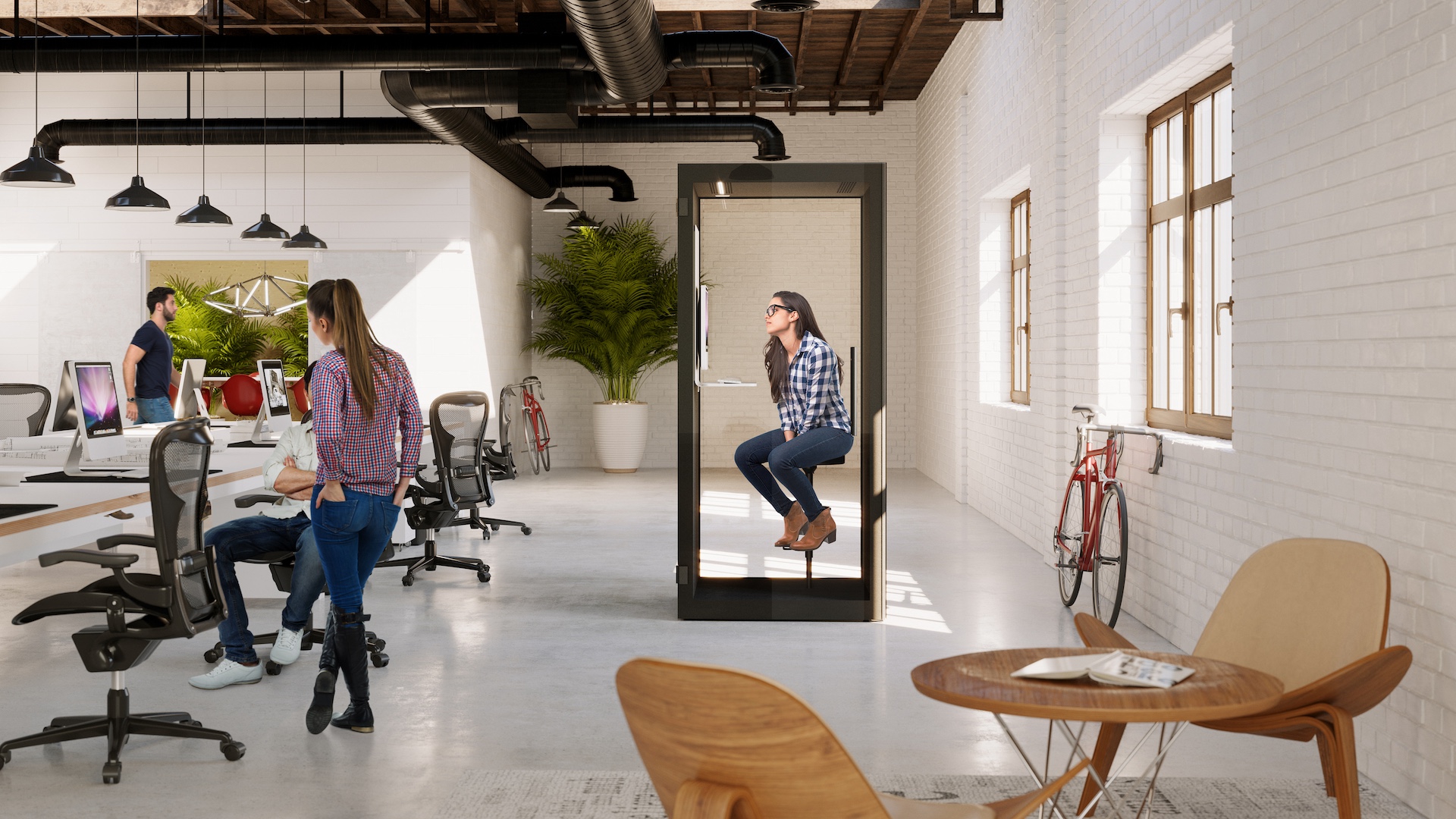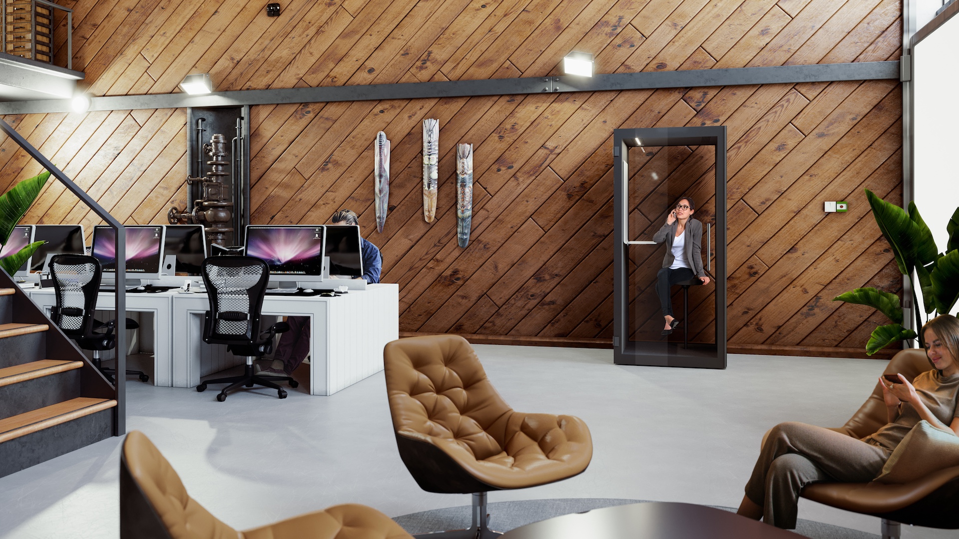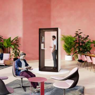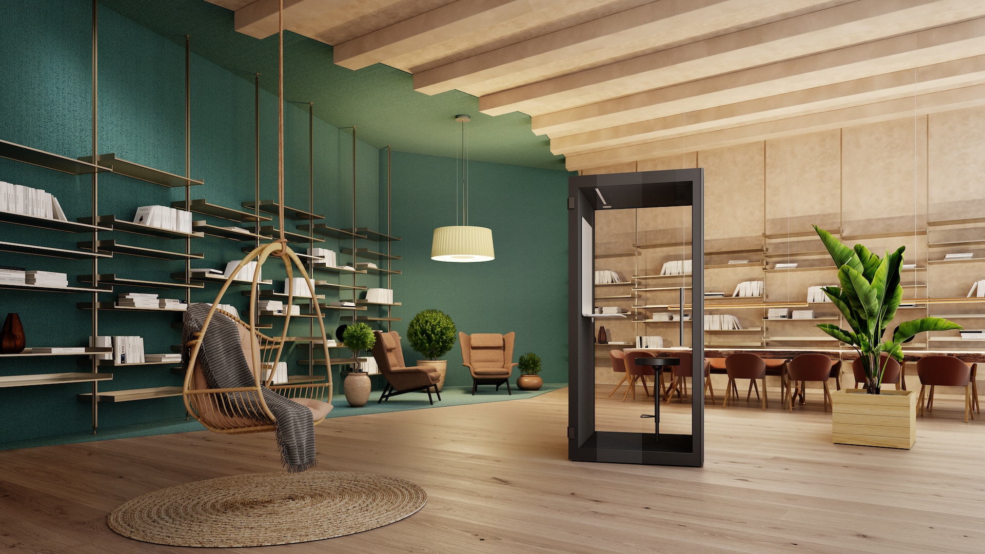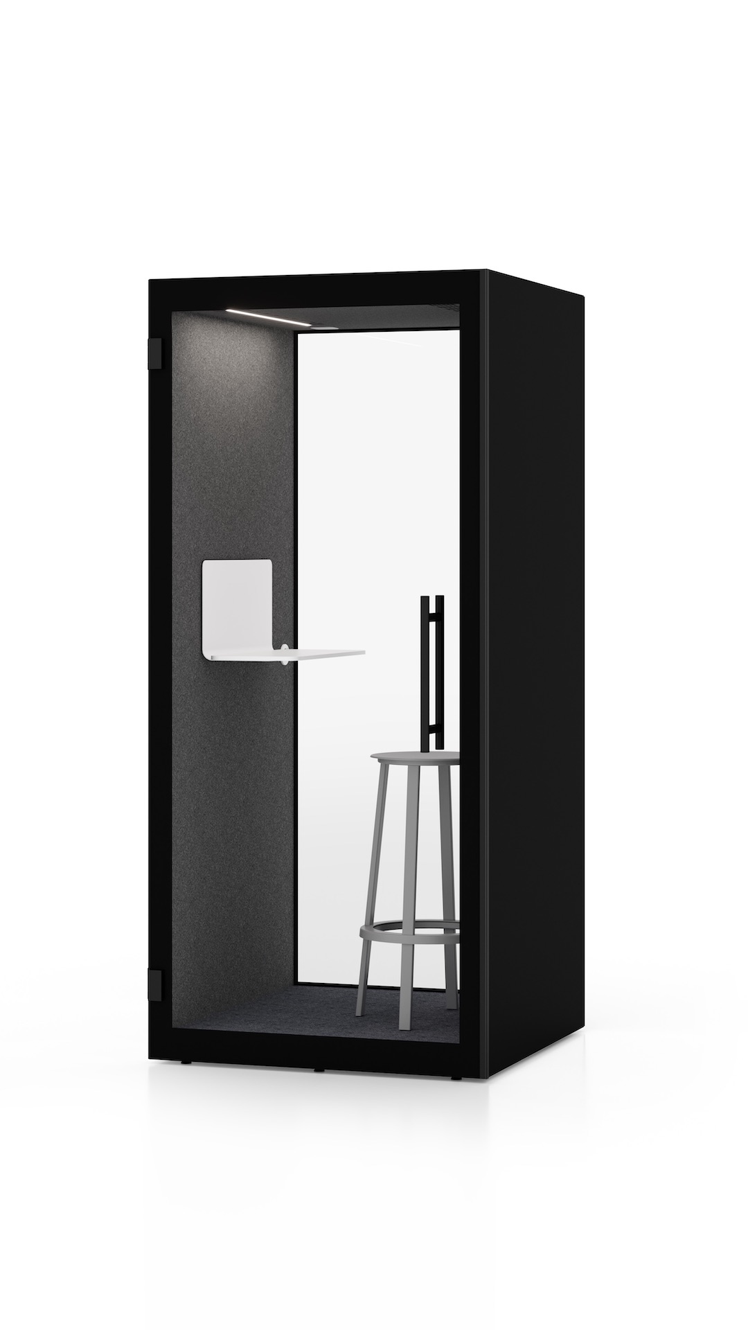Ko telefonski in video klici niso namenjeni celotni pisarni, je ta govorilnica idealna rešitev. Chatbox Single je tiha in zasebna, preprosta, ergonomska in avtomatska. Detektor prisotnosti ohranja LED vklopljen, medtem ko EchoFree, optimiziran za govorno področje, zagotavlja idealno akustično izkušnjo. Zrak se tiho razprši s stropa z več kot dvakratno standardno minimalno hitrostjo pretoka, kar zagotavlja udobje brez suhih oči. Z dodatno nadzorno ploščo Silen Control Panel lahko dodatno prilagodite svojo izkušnjo z zatemnitvijo luči in prilagajanjem prezračevanja. Govorilnica ima možnosti prilagoditve z zamenljivimi stranskimi oblogami in pokrovnimi letvami, ki ohranjajo videz svež in sodoben. Izbirate lahko med različnimi barvami in materiali, pri čemer je vse pohištvo enostavno odstranljivo in zamenljivo.