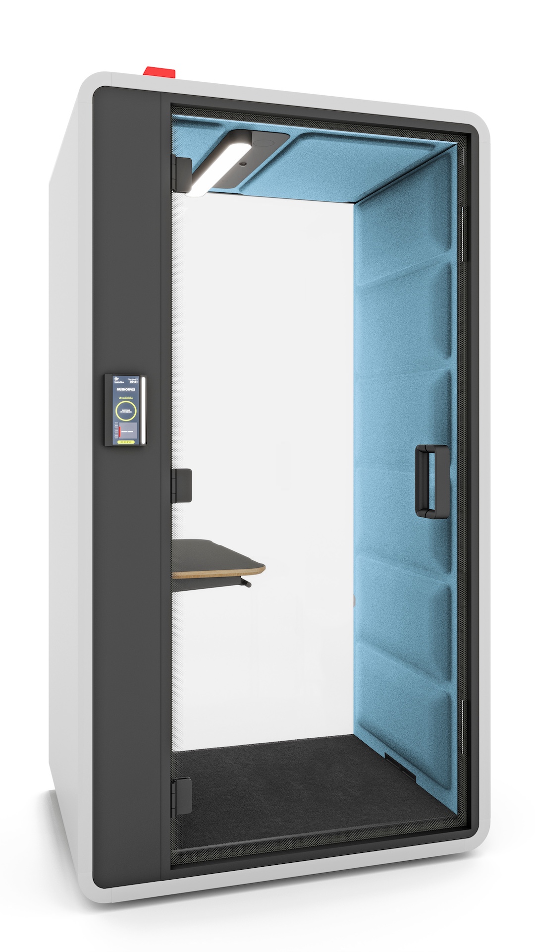 Akustična govorilnica HushFree.S je zasnovana za individualno delo, daljše videokonference in telefonske klice. Ima mizo z ročno nastavitvijo višine – ta funkcija je enostavna za uporabo in ne zahteva dodatnega napajanja. HushFree.S omogoča delo stoje in sede, da med delom zavzamete optimalen položaj telesa. V samo nekaj sekundah lahko uporabnik spremeni višino mizne plošče na ustrezno raven, prilagojeno nalogi. Estetsko oblikovana stranska LED osvetlitev uporabnikovega obraza zagotavlja, da je med video klici še bolje viden. HushAssistant je izbirni modul z zaslonom na dotik za upravljanje osvetlitve in prezračevanja. Omogoča preprosto in intuitivno spreminjanje barve in intenzivnosti svetlobe (2200–6500 K), hitrosti ventilatorjev in možnost upravljanja rezervacij akustične govorilnice. HushFree.XS ima vgrajena kolesa, tako da jo lahko premikate po pisarni, ne da bi jo razstavili.