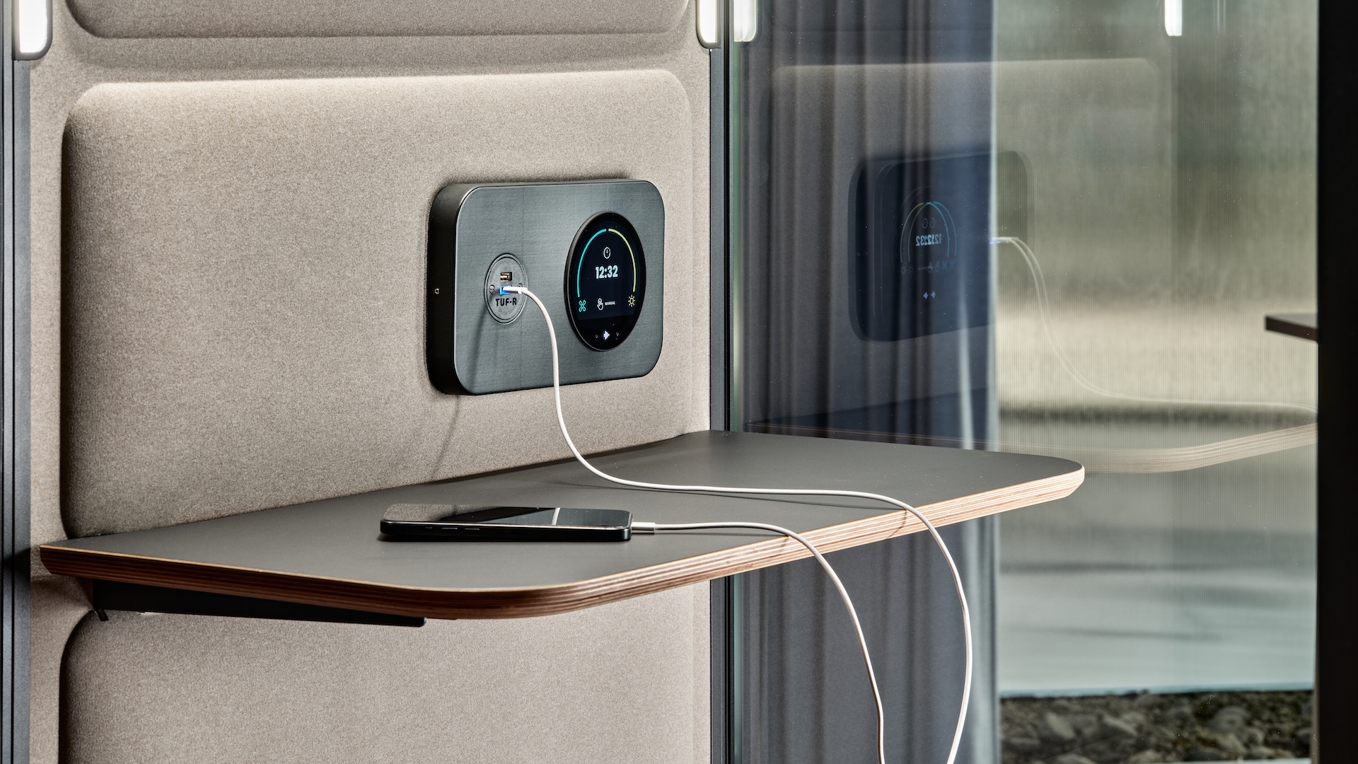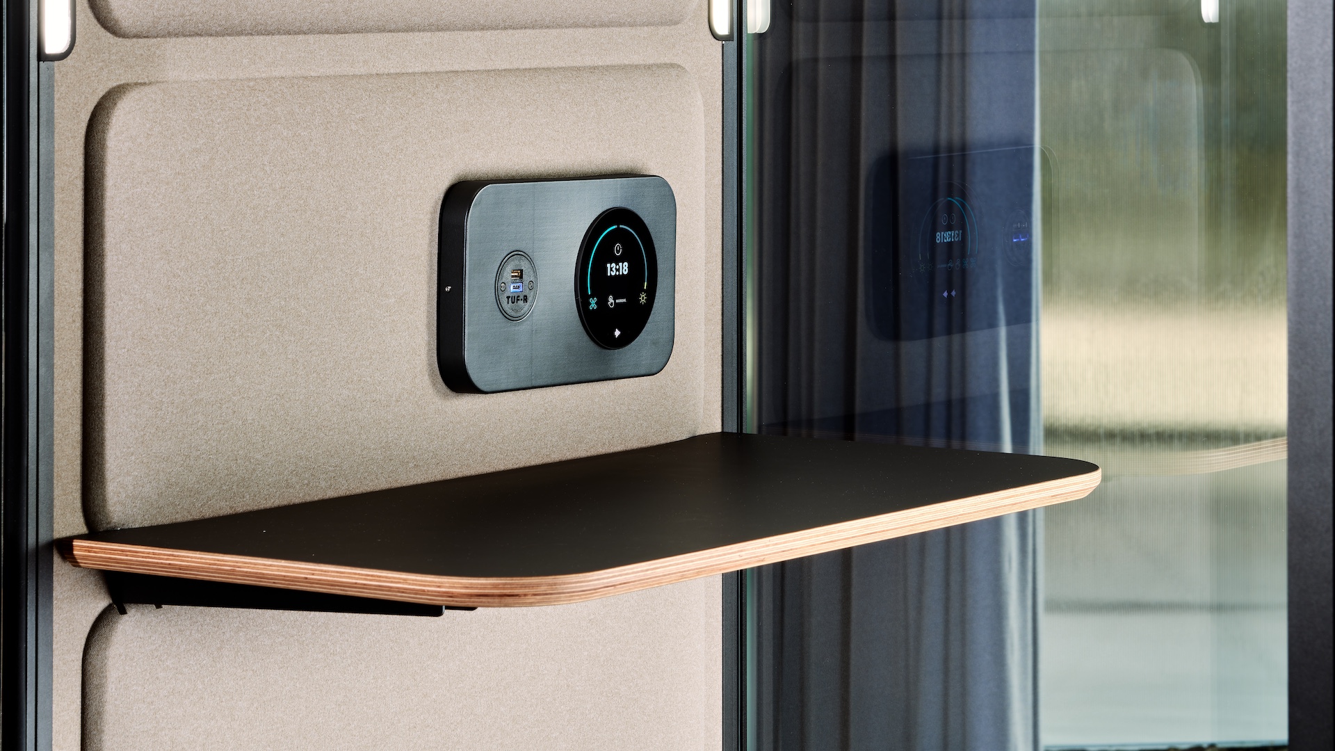 HushFree.XS ima vgrajena kolesa, tako da jo lahko premikate po pisarni, ne da bi jo razstavili.