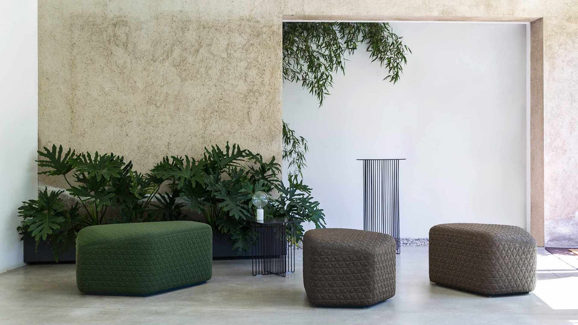 Gradniki v obliki pohištva. Sedež lahko služi kot samostojen kos ali pa ga kombiniramo z drugimi v vrsti prefinjenih barv in nepravilnih oblik.
