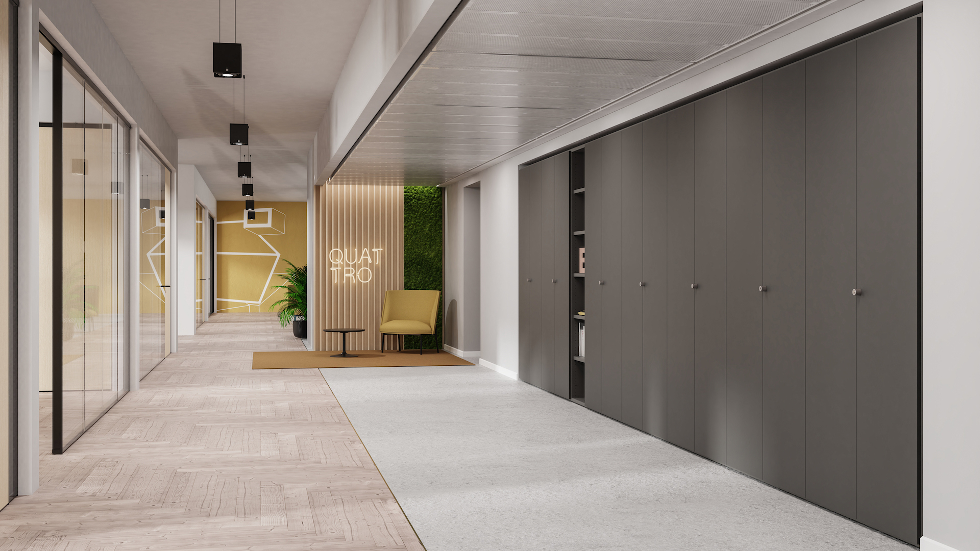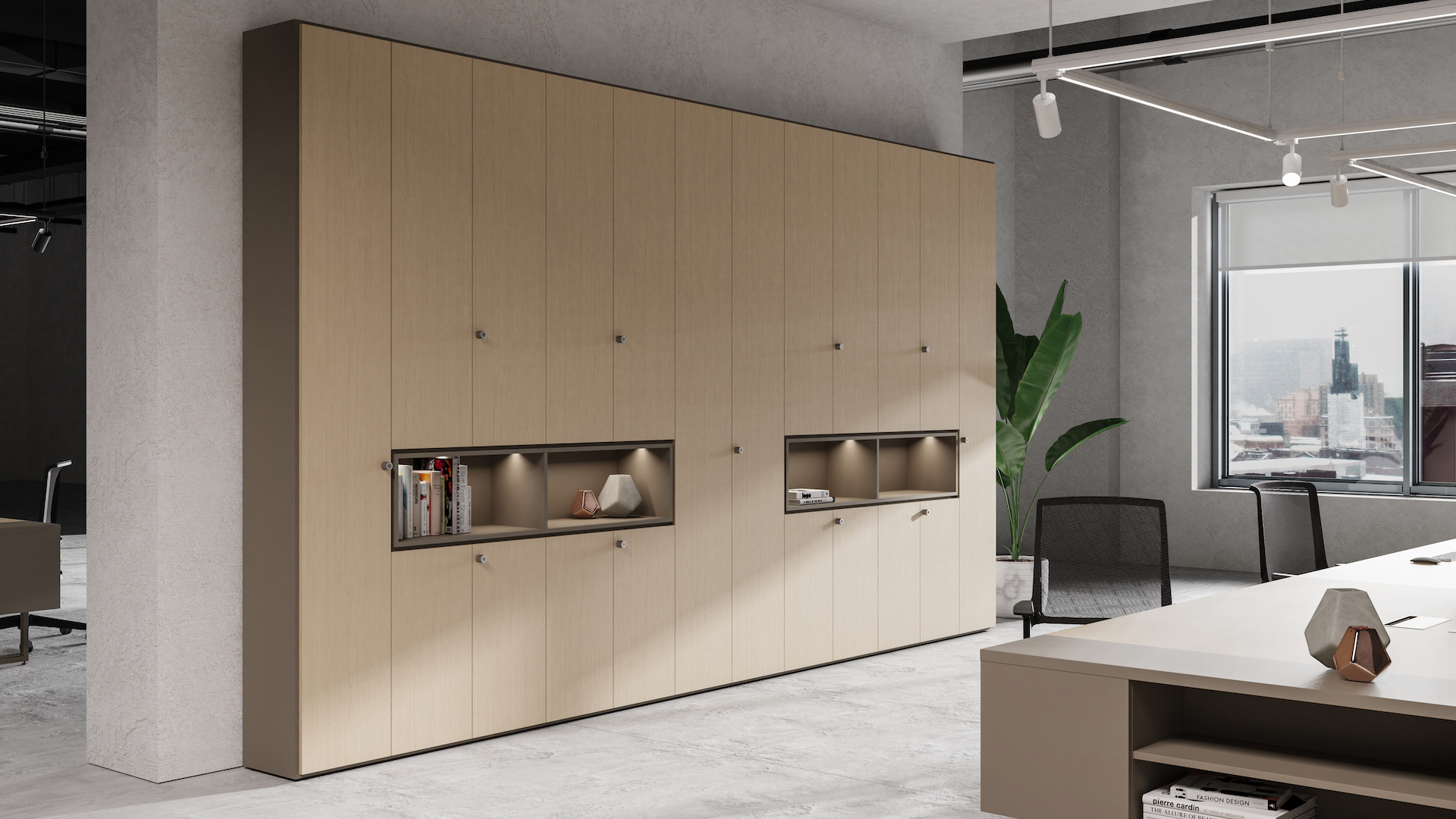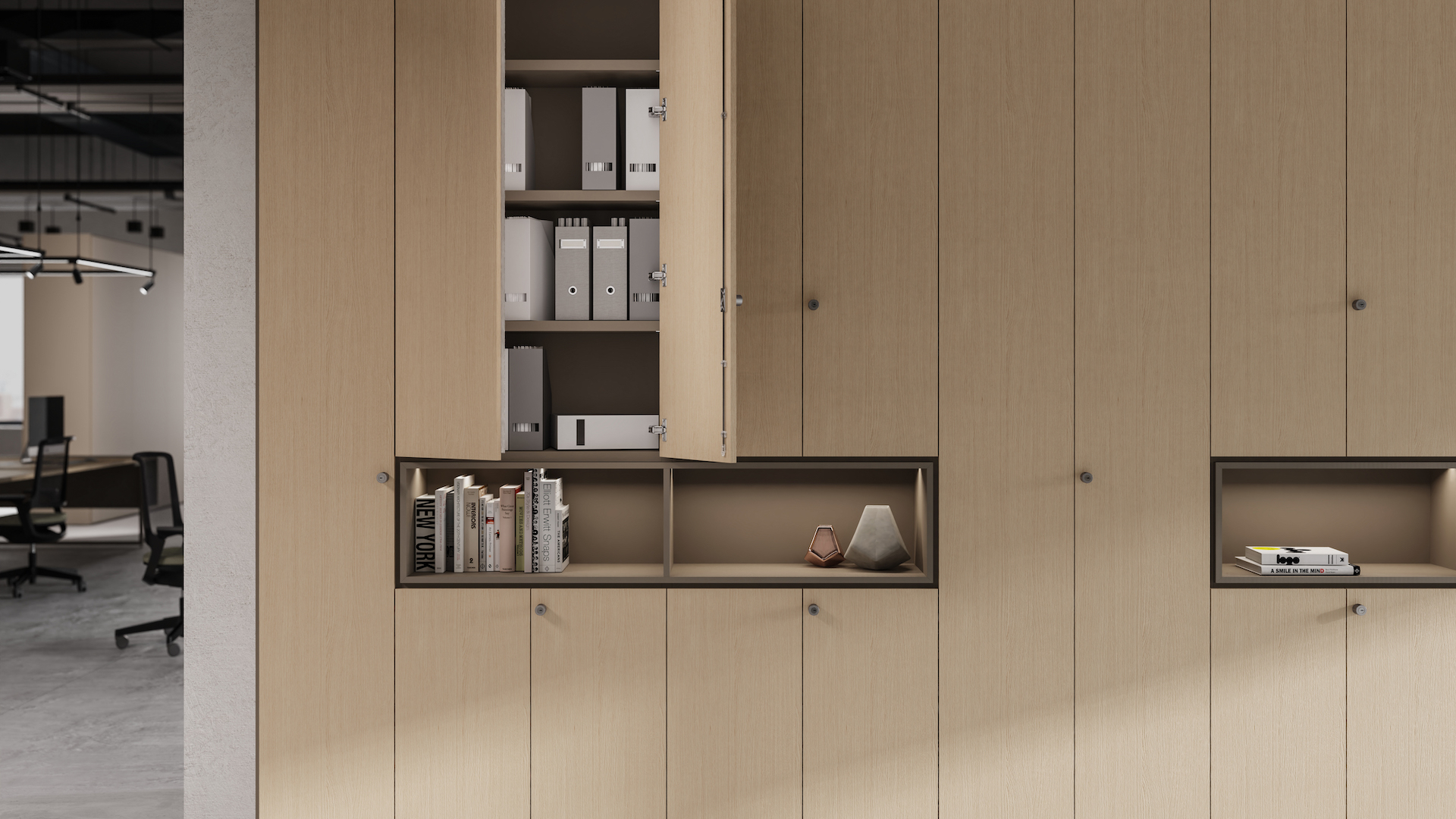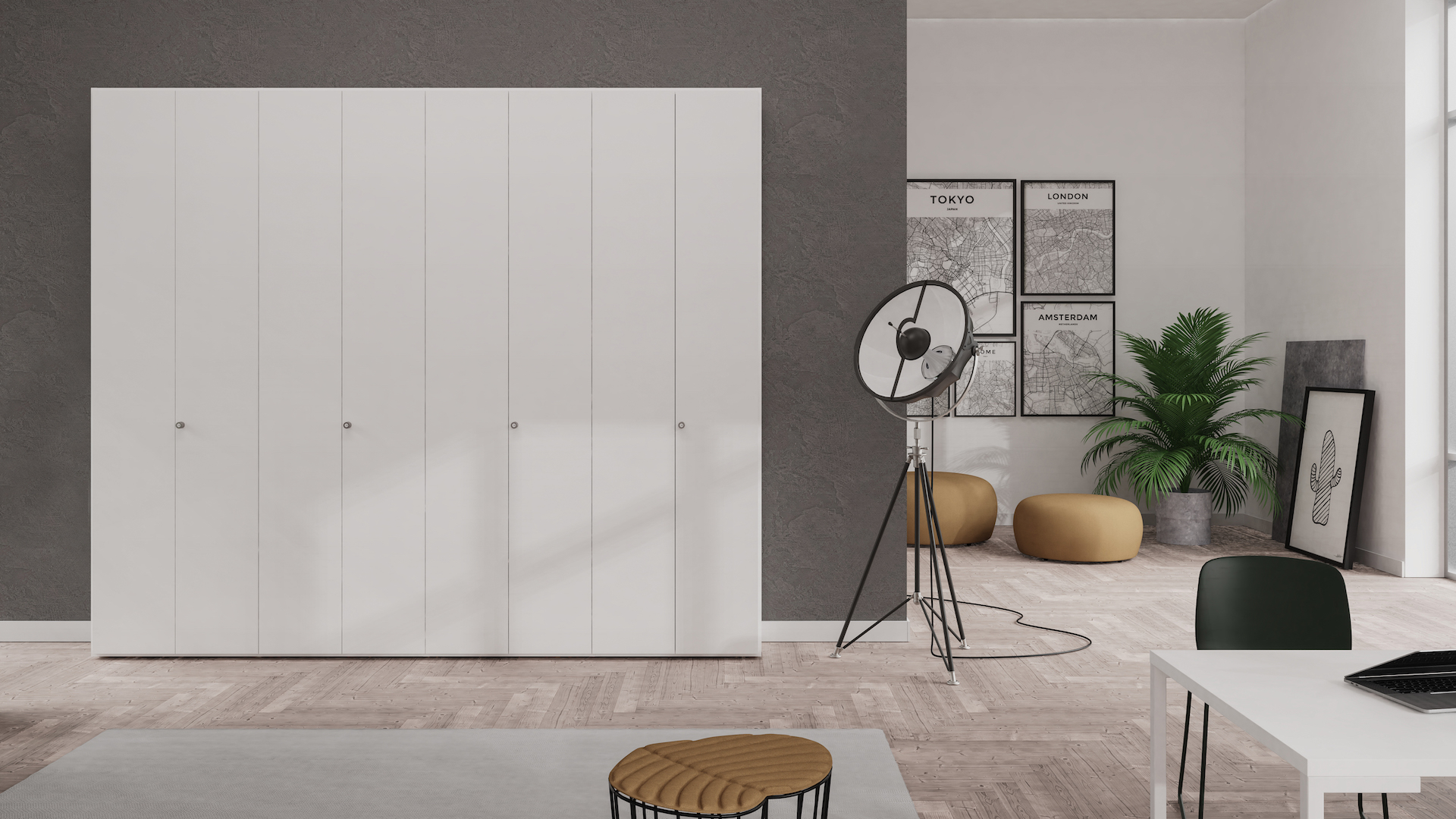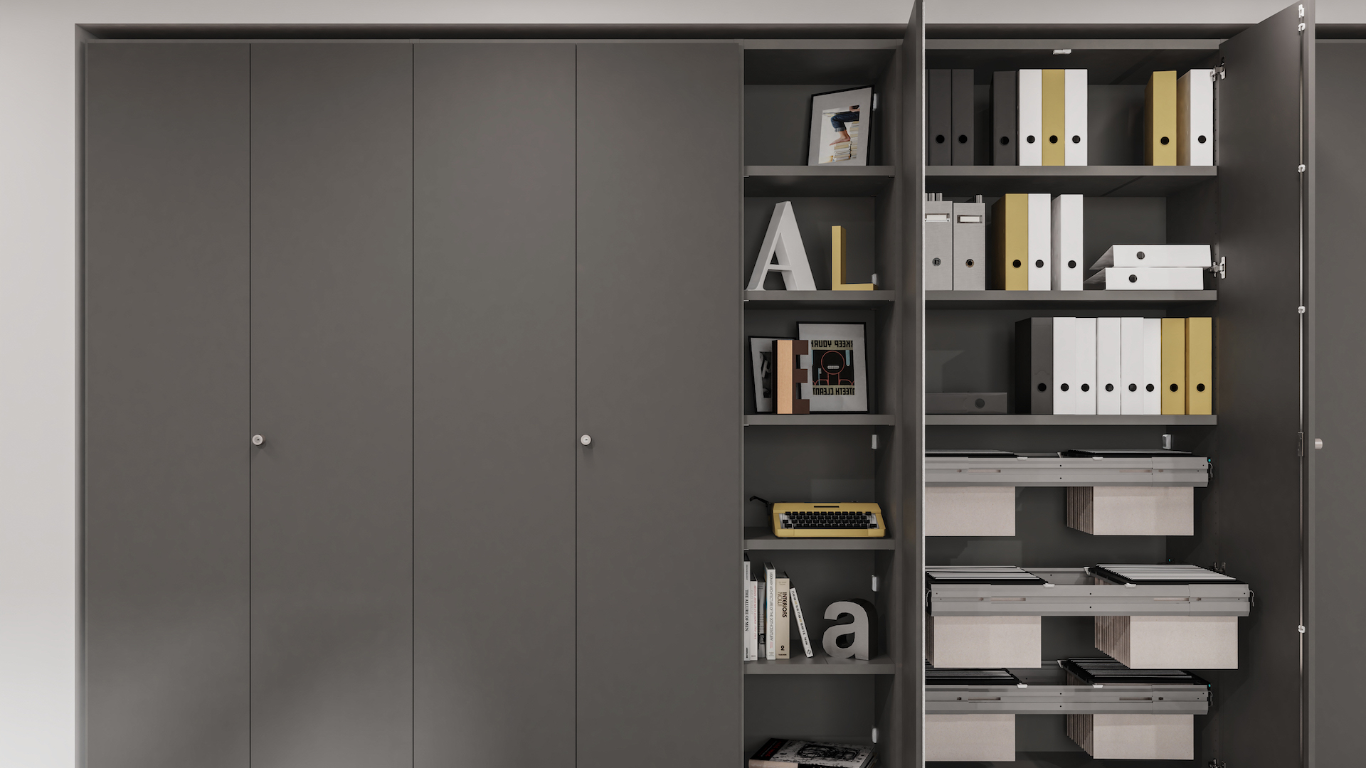 Quattro je stenski sistem za shranjevanje, zasnovan na način, da je enostaven in ekonomičen, a hkrati zelo vsestranski in eleganten. Že preprosta igra barv med vrati in okvirjem naredi vsako kompozicijo neverjetno prijetno.