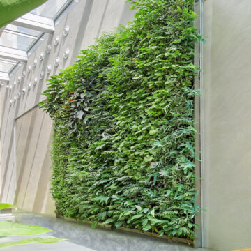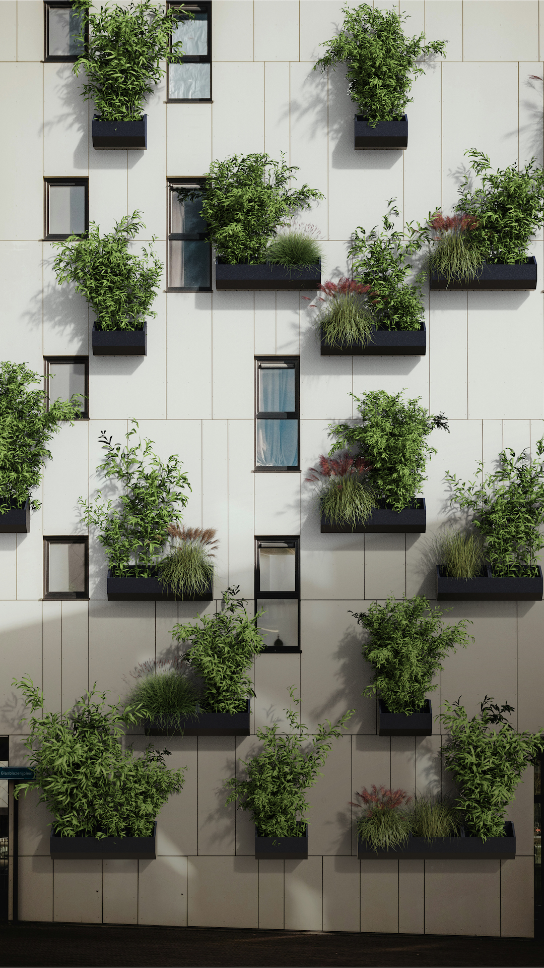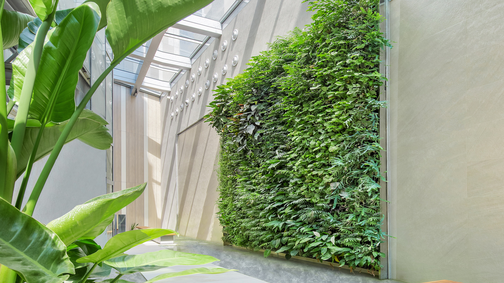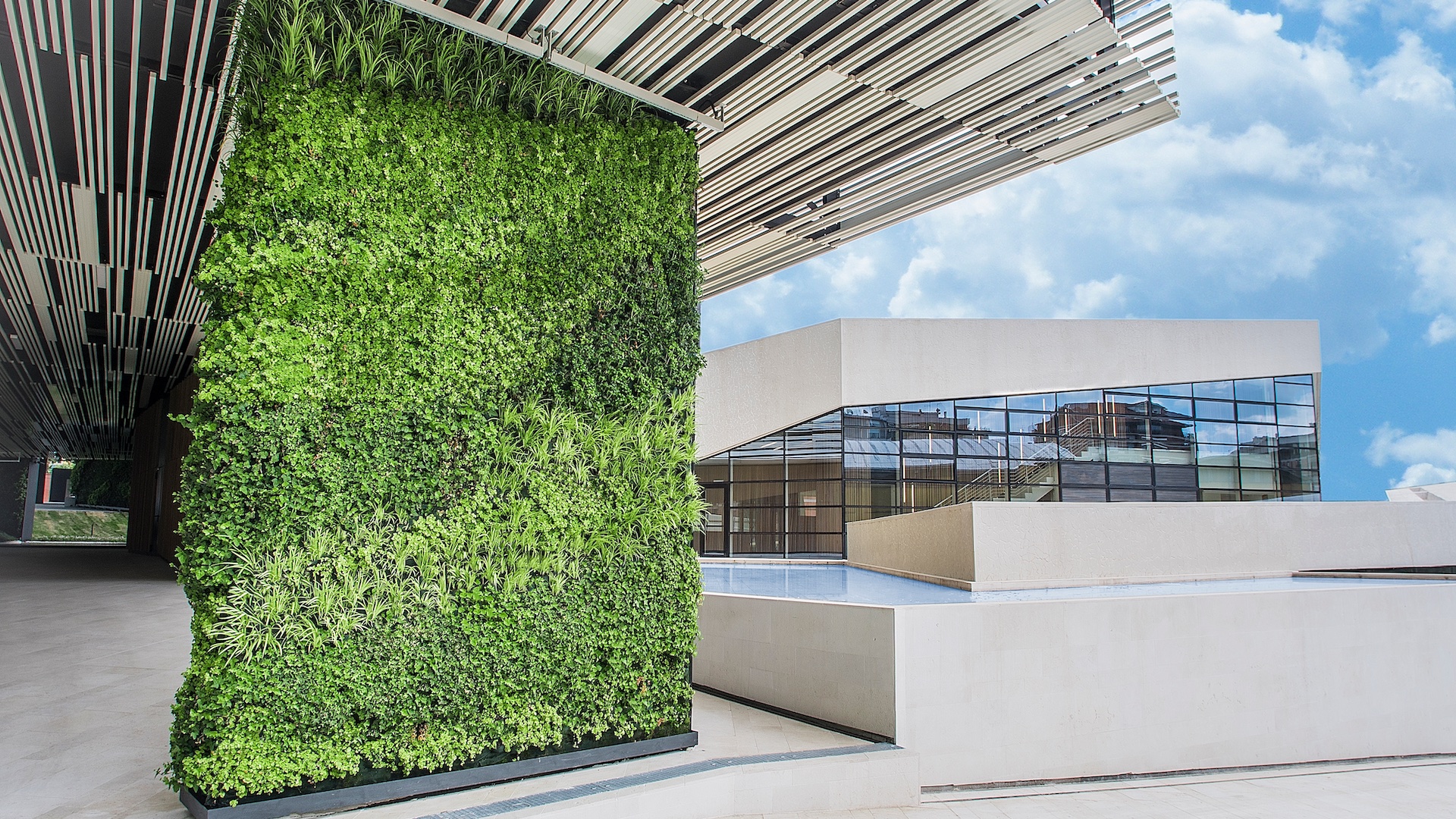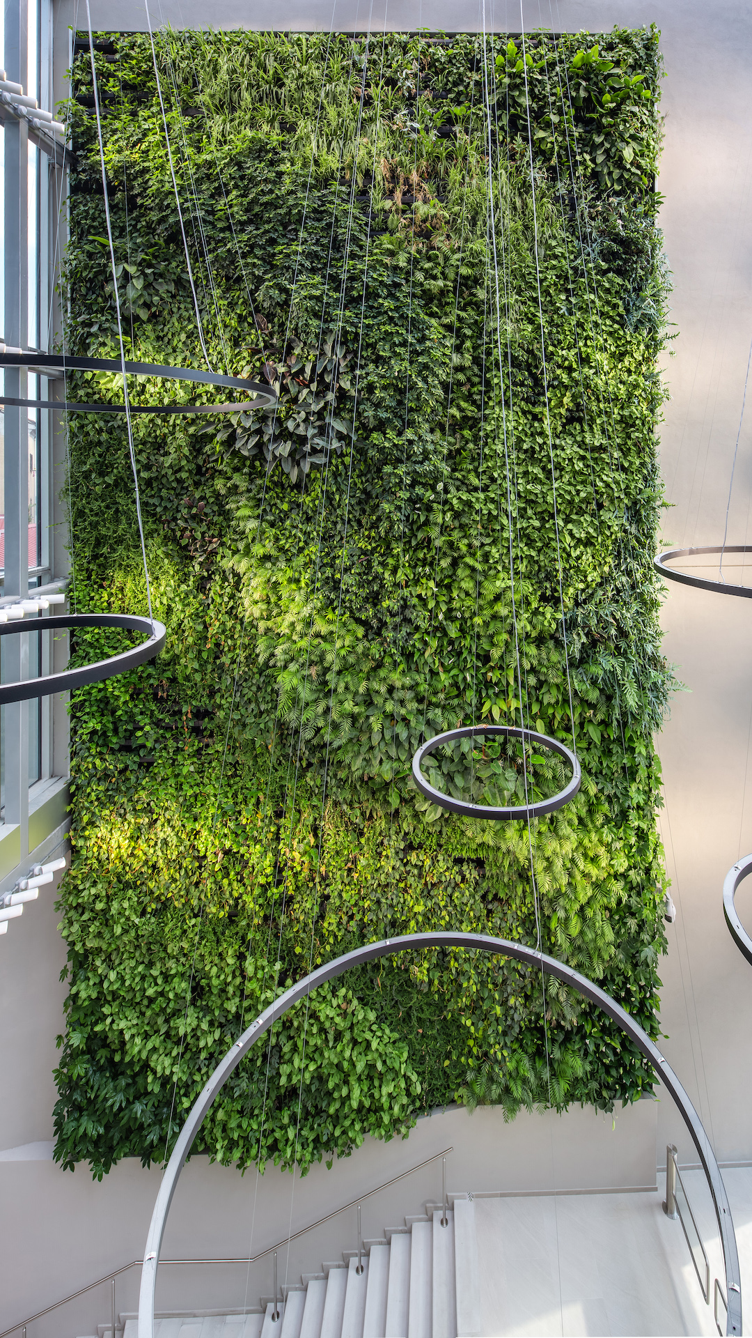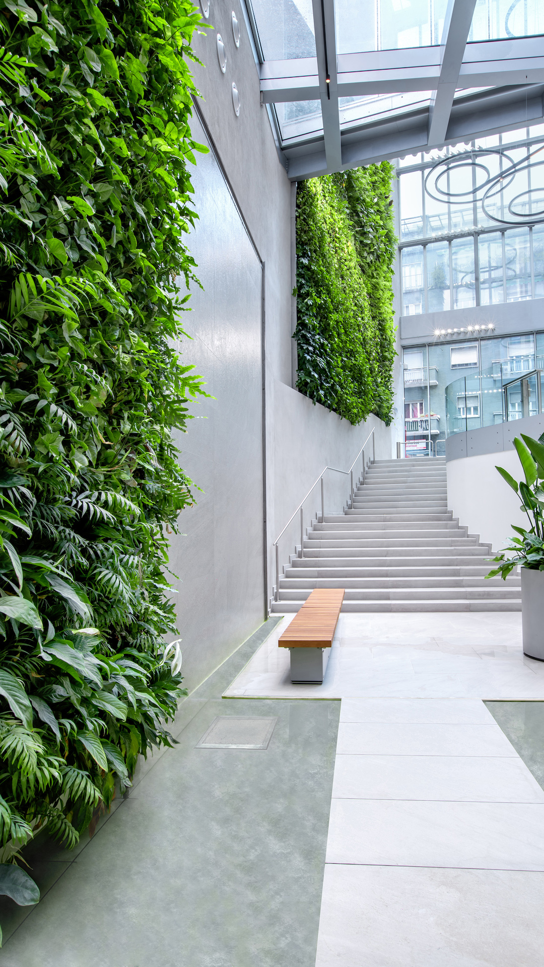 Vertikalni vrtovi na stenah ali fasadah so zasnovani tako za notranje kot zunanje površine. Vsako okolje spremenijo v oazo dobrega počutja in sprostitve. Sistem vključuje vertikalne trate, stene in zelenjavne vrtove ter uporablja najnaprednejše tehnologije.